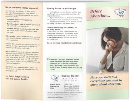 A pack of 50 “Before Abortion” brochures speak to women who are considering abortion.